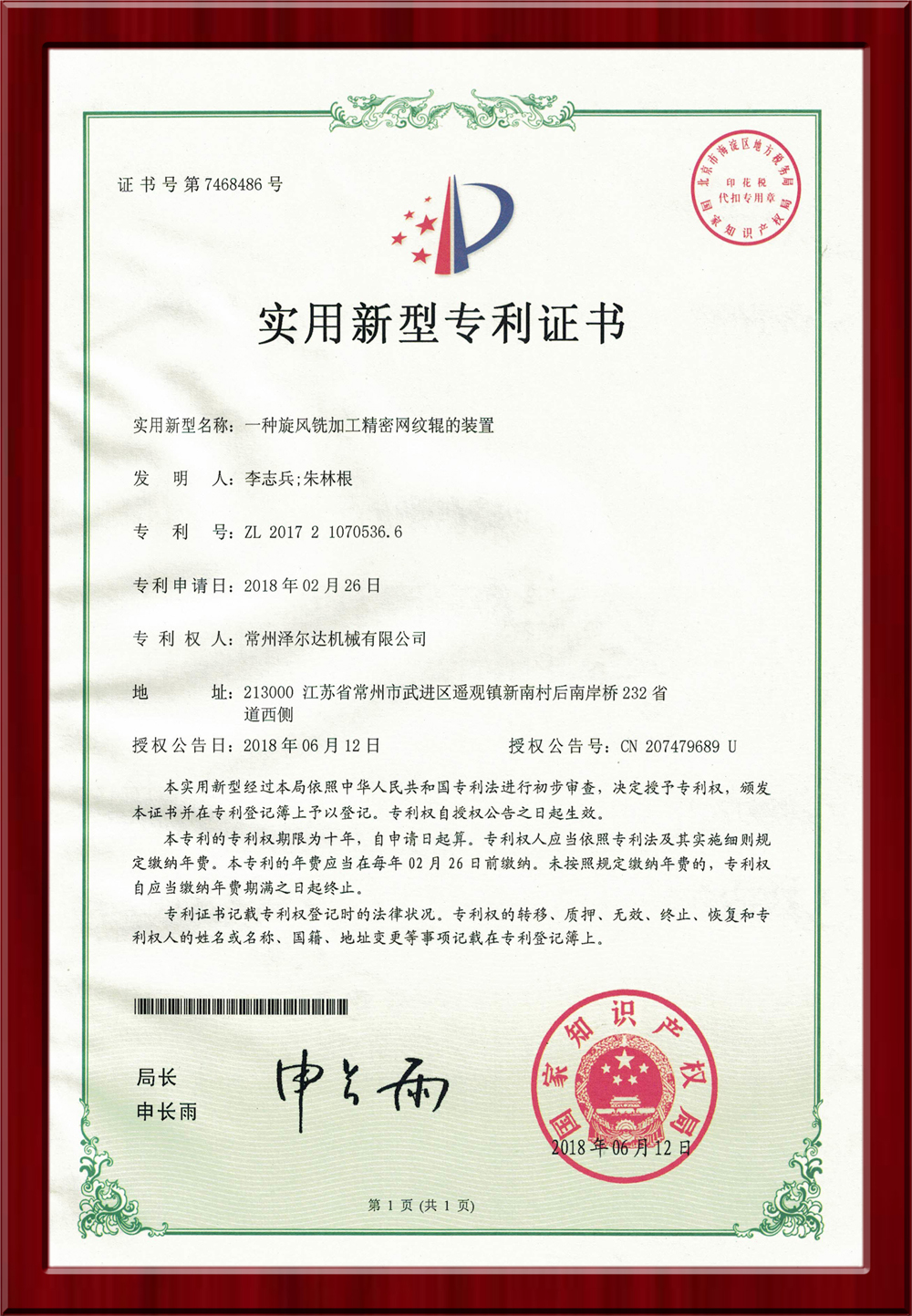 • 7468486實(shí)用新型專利